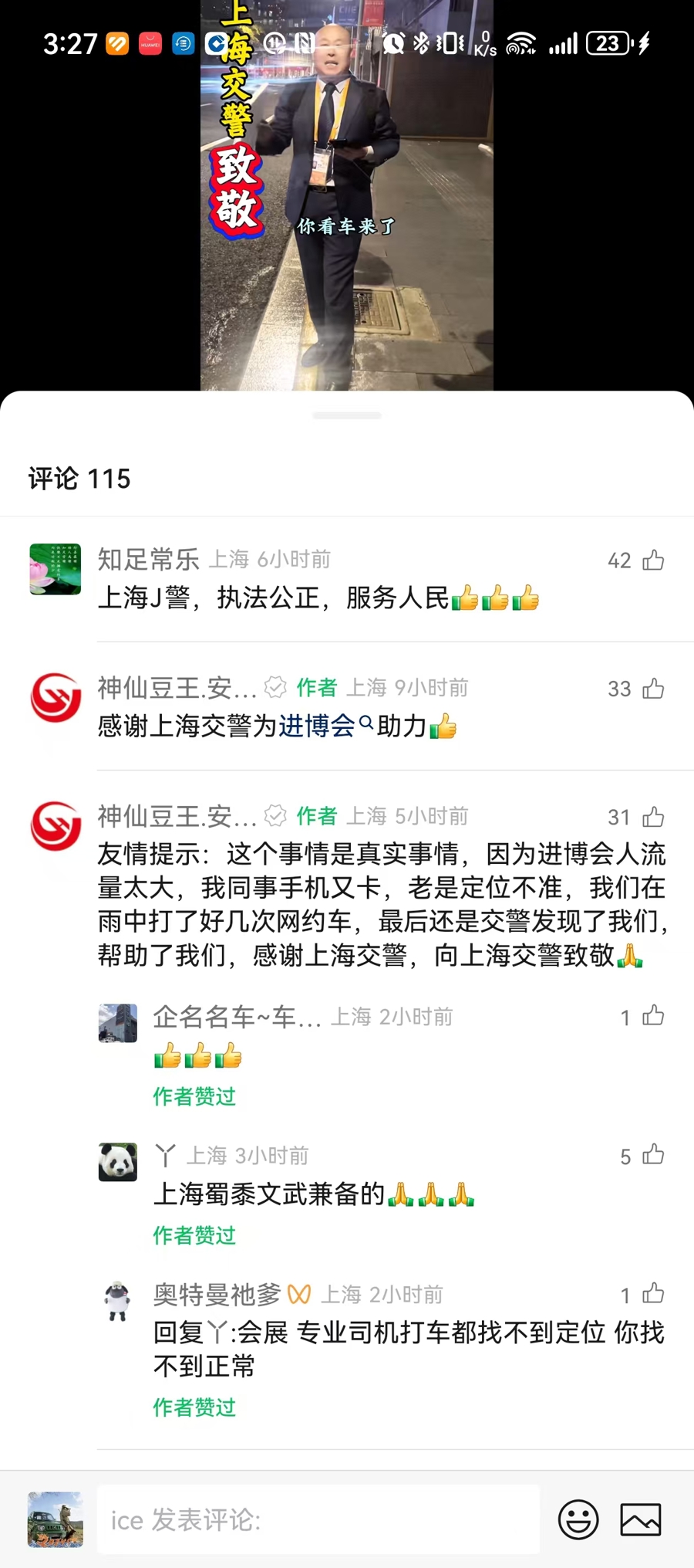 “向上海交警致敬!”事后,参展商蒋先生特意制作短视频记录这一经历,并发布在社交平台上,引发众多网友点赞。视频中,孙文清雨中引导车辆的身影,成为进博会期间上海交警热情服务的一个生动缩影。